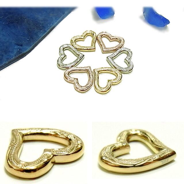 両面に施される、永遠の愛を意味するスクロールハワイアン柄は繊細で職人技の光る絶品。定番のオープンハート+ハワイアンジュエリー♪