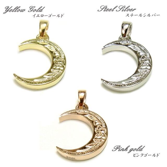 【ハワイアンジュエリー / HawaiianJewelry】 ペンダント/ネックレス ムーン 月 三日月 プルメリア スクロール (gps8911)