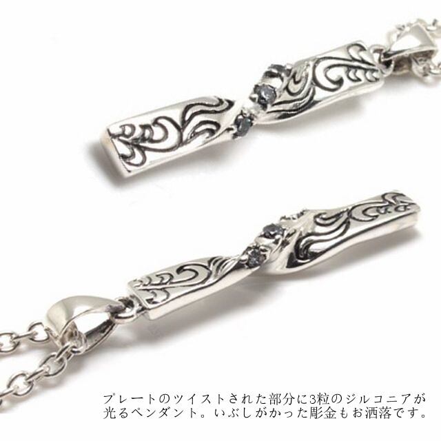 メンズ レディース ペア アクセサリー アクセ ハワイアンジュエリー ハワイアンシルバー ハワジュ ツイストプレート キュービックジルコニア ネックレス シルバー シルバー925 ペンダント シルバーペンダント プレゼント シルバー 可愛い かわいい 通販 安い 激安 プチプラ