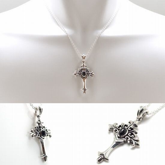 【シルバーネックレス】 ブラックスター×クロス×フレア メンズ レディース ペア (PJ-400bst)
