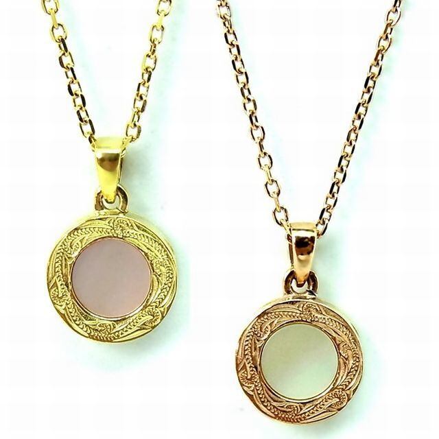 ハワイアンジュエリー ハワジュ ネックレス メダル シェル 貝 ピンクシェル ホワイトシェル スクロール ペンダント イエローゴールド ピンクゴールド ステンレス アレルギー ノンアレルギー アクセサリー アクセ ジュエリー プレゼント 贈り物 レディース メンズ ユニセックス ペアアクセサリー ペアアクセ