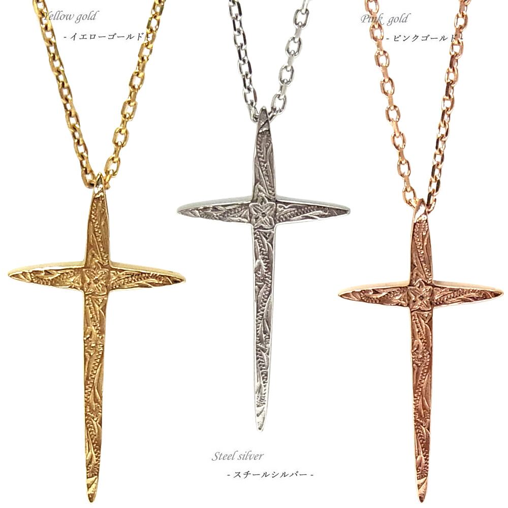 ハワイアンジュエリー ネックレス クロス ペンダント メンズ レディース ペア 金属アレルギー対応 サージカル ステンレス スチールシルバー イエローゴールド ピンクゴールド インスタ (gps81165)